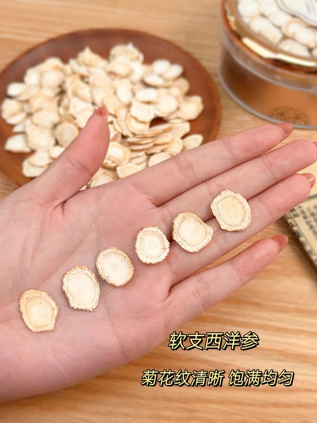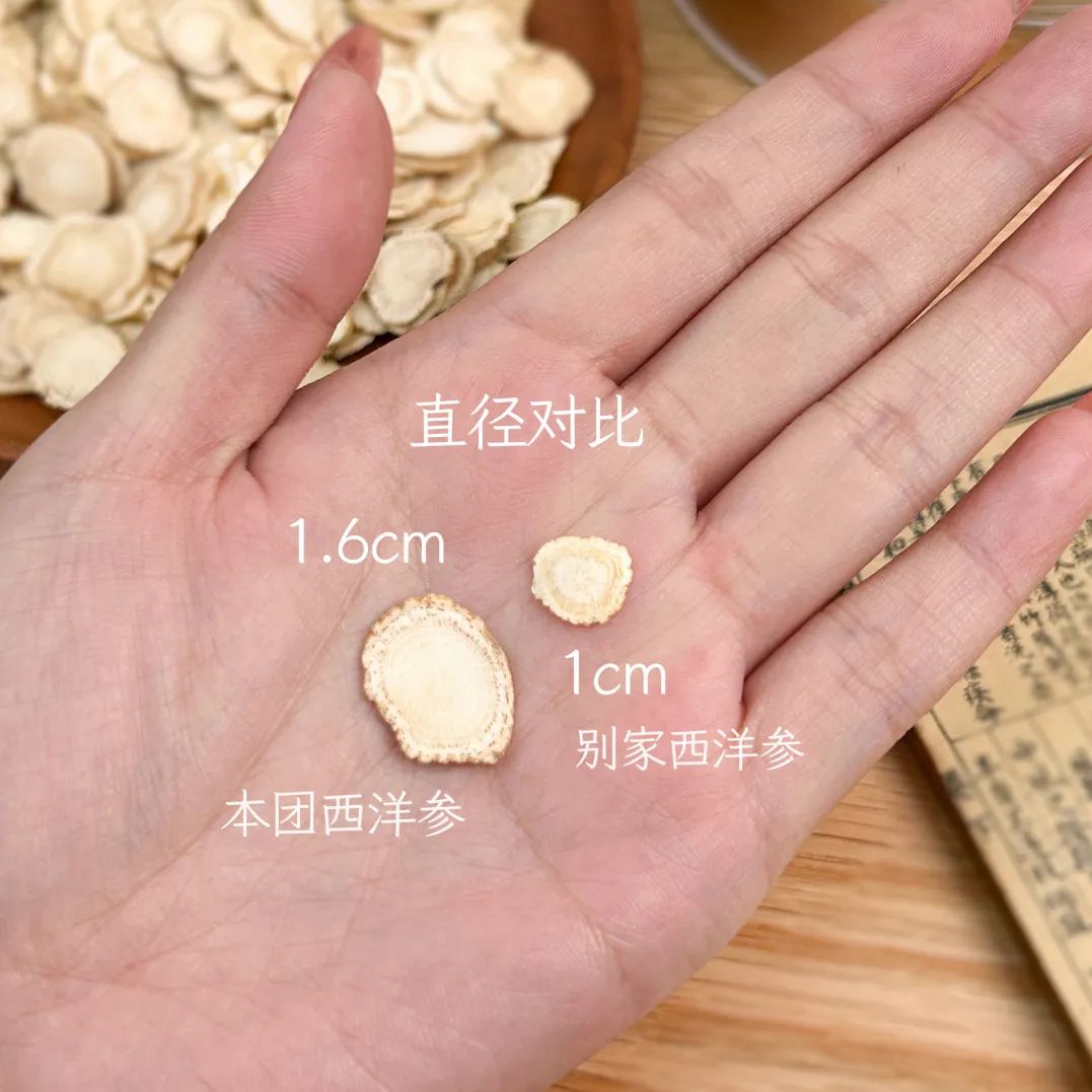 升级后的西洋参片从0.5mm到1mm厚切,10mm到16mm直径,切片尺寸更大、参肉更饱满,普通参片直接被秒杀了!