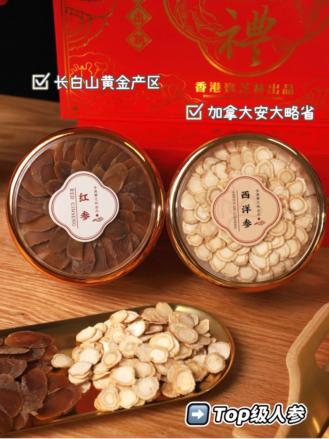 西洋参50g+红参80g,全部5年足龄参,主根切片,一盒能拿下2种滋补。红参性温,西洋参性凉,两者搭配到阴阳双补、气血兼顾。