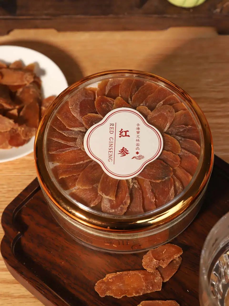 仔细看看参片,每一片都饱满均匀,菊花纹清晰可见,散发着浓郁的参香。