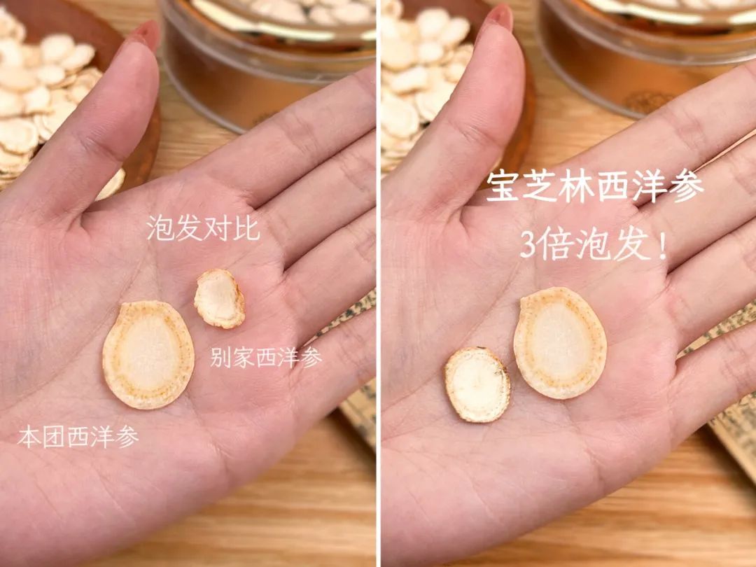 普通西洋参根本没法比,参片小,参味淡,泡发后也没什么变化,而宝芝林西洋参能达到3倍泡发,品质肉眼可见!