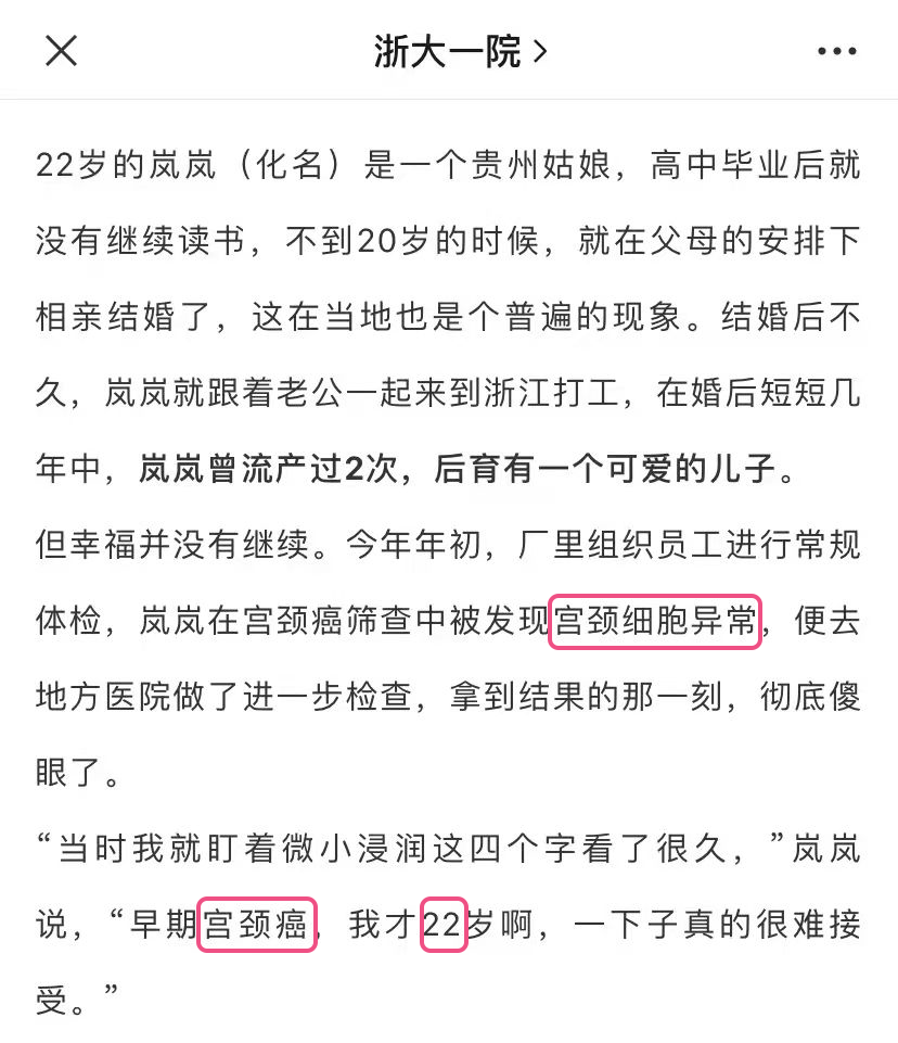 22 岁的她,是浙大一院最年轻的宫颈癌患者……
