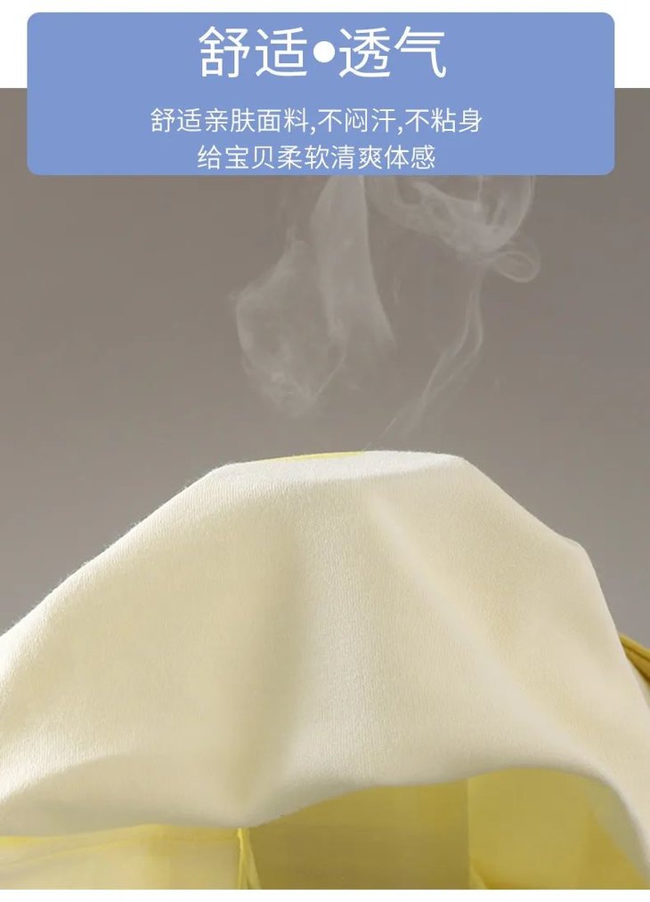 吸湿透气,快速回干,自带呼吸感,不管娃怎么玩闹,也不用担心闷汗~