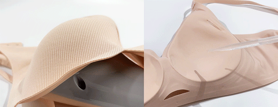 没有在胸垫上做加厚处理,它是利用脂肪软流动原理加上果冻胶多方发力来穿出自然饱满胸型。