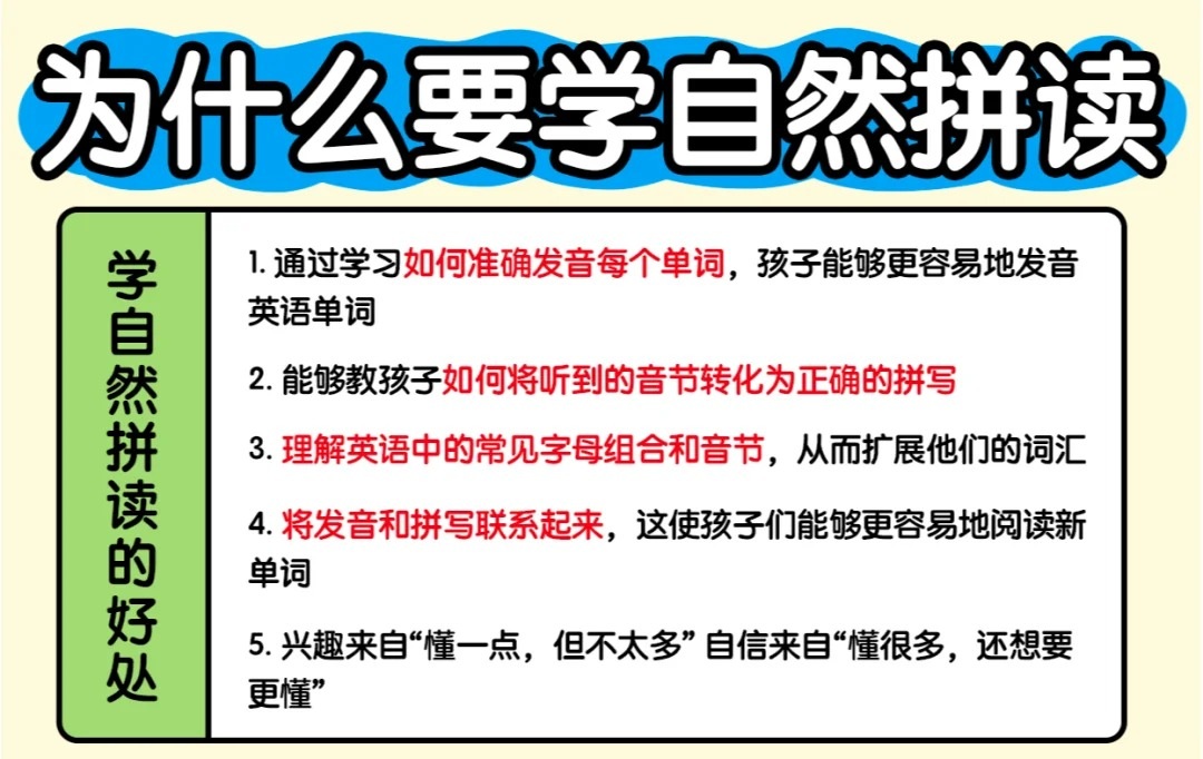当孩子接近上小学,可以适当引入自然拼读,实现自主阅读入门,并开始有结构的输出练习。