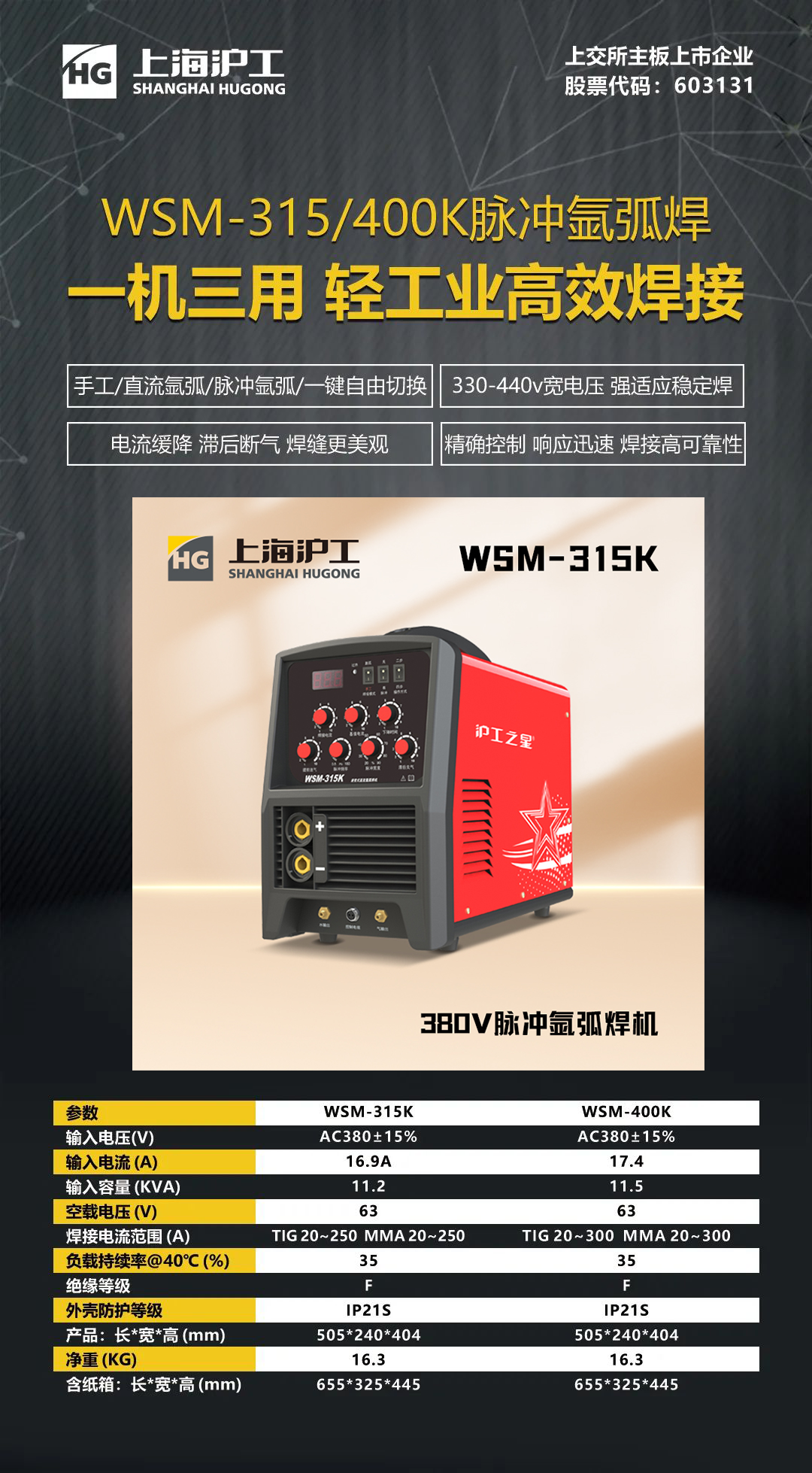 【沪工之星】WSM-315/400K|一机三用!脉冲氩弧焊,轻工业高效焊接!