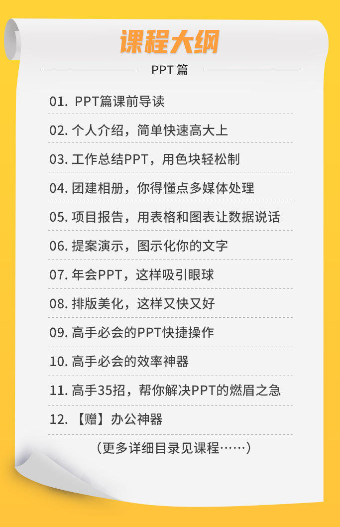 做出高颜值的 PPT,内容直击客户爸爸的痛点,一举拿下百万订单; 花 1 小时就搞定的年终汇报,别人花 72 小时还比不上你的好看有料; 做 Excel 表格如同玩游戏一样溜,高效工作准时下班,公司还得给你加工资! ……