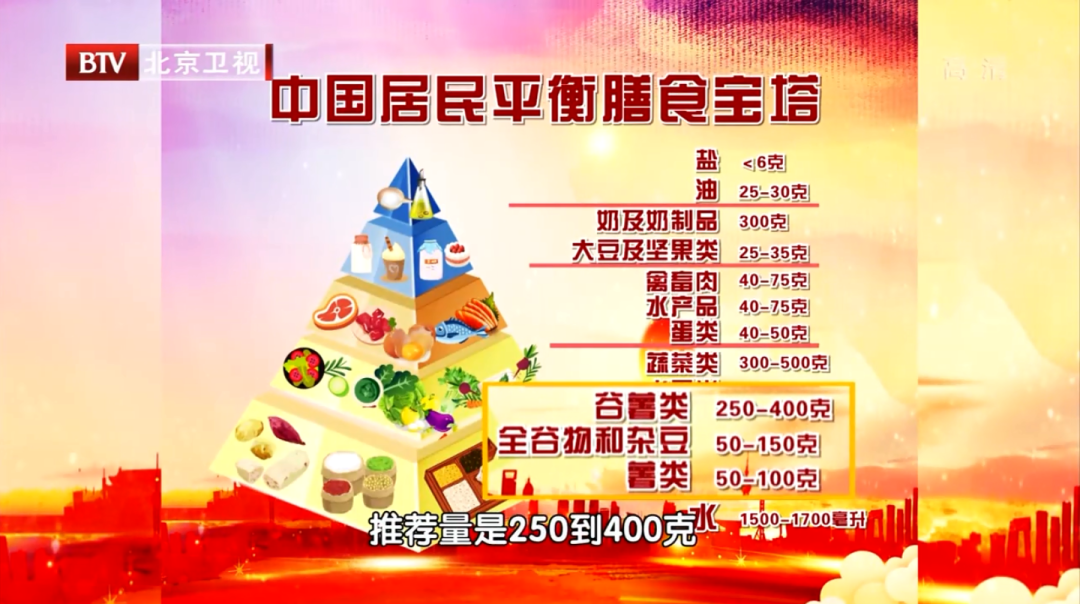 《中国居民膳食指南》建议:每天应该摄入主食250-400g,包含谷物、杂豆类、薯类等3种以上,谷薯类多样是平衡膳食模式的重要特征。