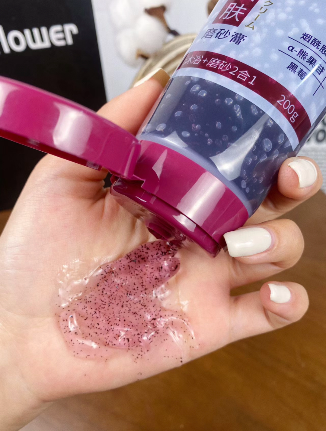 绵软的质地,亮白肌肤的好帮手,一瓶相当于磨砂膏和沐浴露,用完皮肤细腻柔软!为了做精致的夏日女孩,答应我,一定要把黑莓焕肤磨砂膏提上日程,在夏天一鸣惊人!
