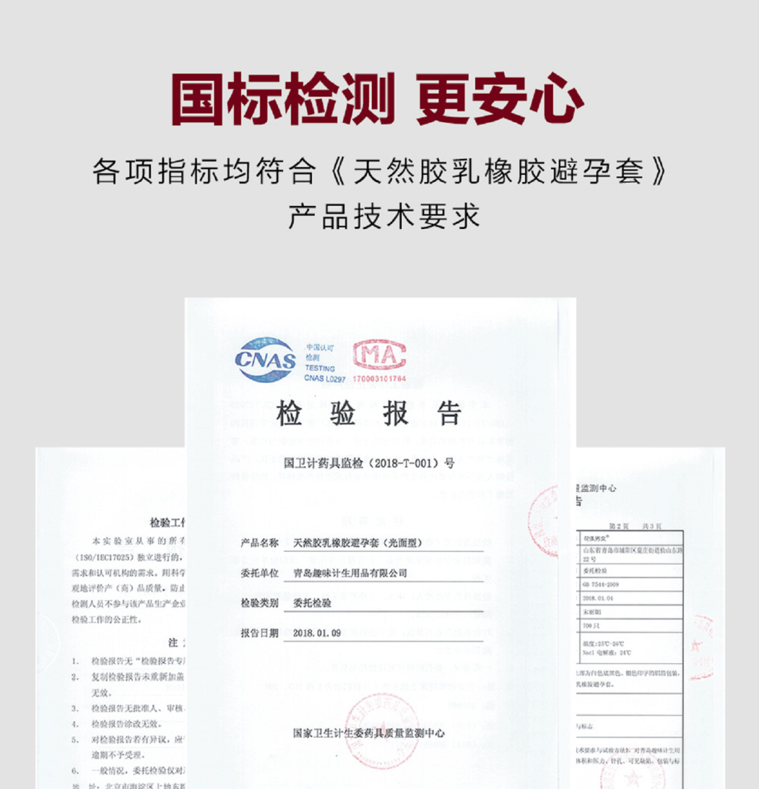 花漾男女隐形套每个批次从原料、裸套、润滑液、包装盒以及最终成品,全程进行多达72项检测。