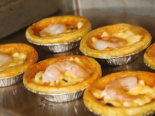 易小焙蛋挞皮6个 番茄酱50g 虾仁6个 易小焙马苏30g 玉米,青豆30g