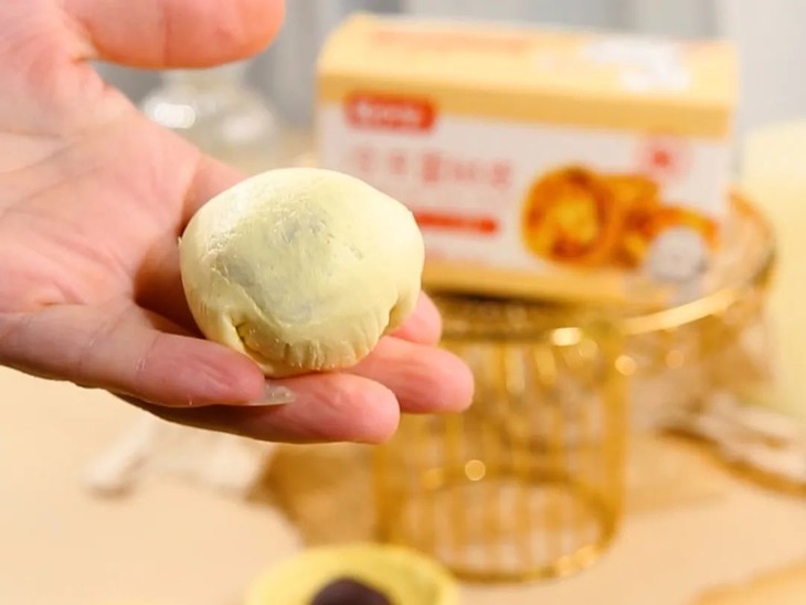 1.将蛋黄喷酒烤制备用,用豆沙包裹咸蛋黄