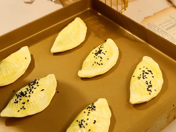 2.表面刷上蛋液,并撒上黑芝麻