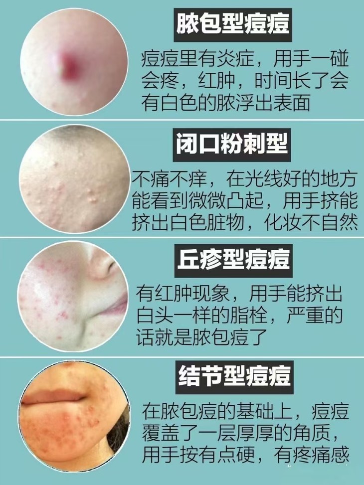 大家也可以对照这个图,看下自己的痘痘是什么类型。