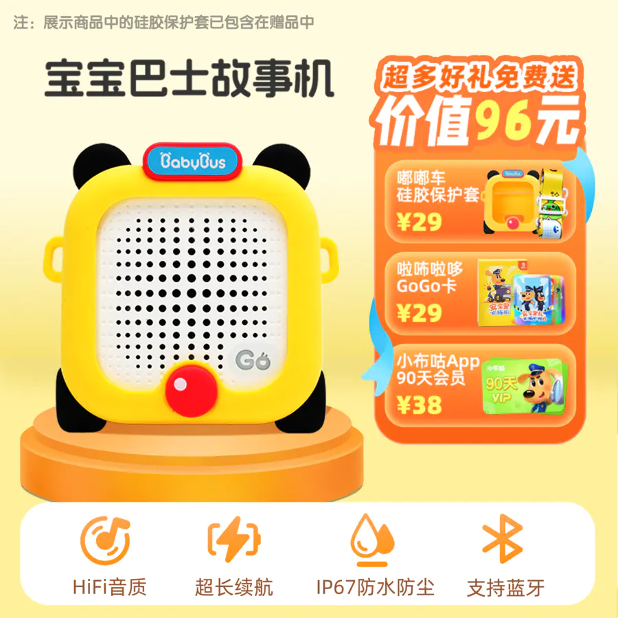 故事机达到IP67防护等级使它具有出色的防水、防尘性能,能支持在各种环境下陪伴孩子。嘟嘟车造型的硅胶套+肩带也是我们故事机的出行好伙伴,让孩子久背不累,随心出行~