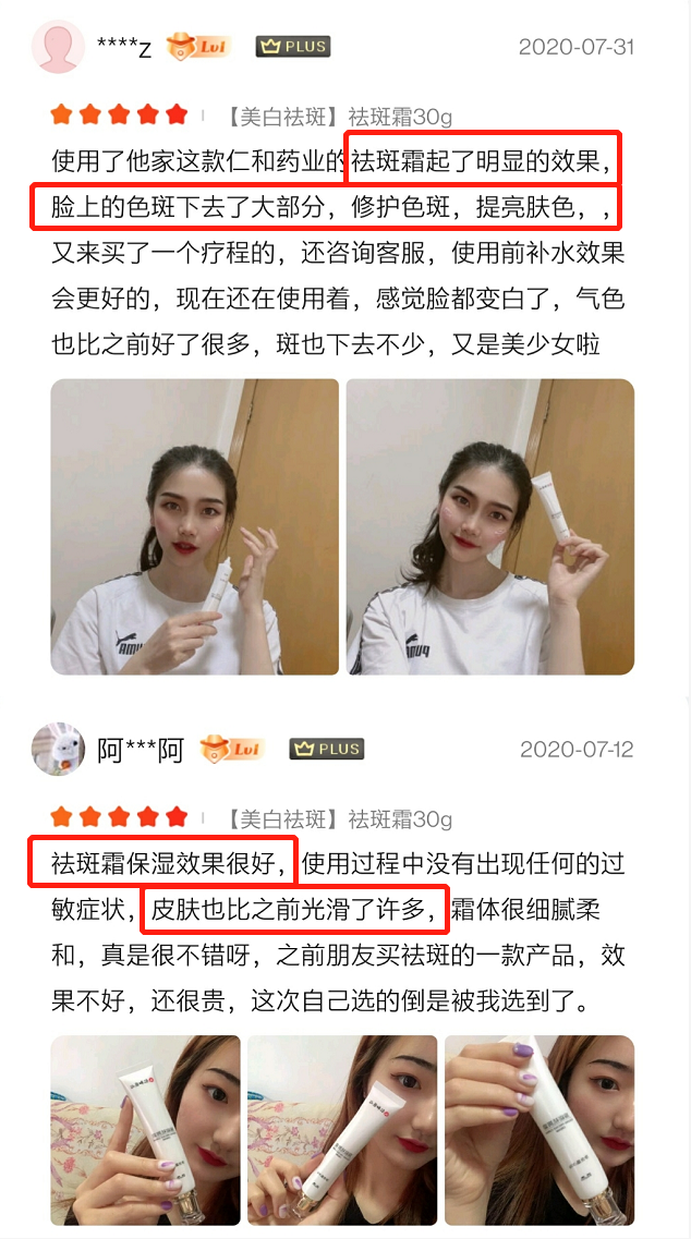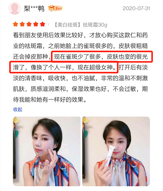 2、上市以来好评不断,不需要修图,祛斑效果肉眼可见;