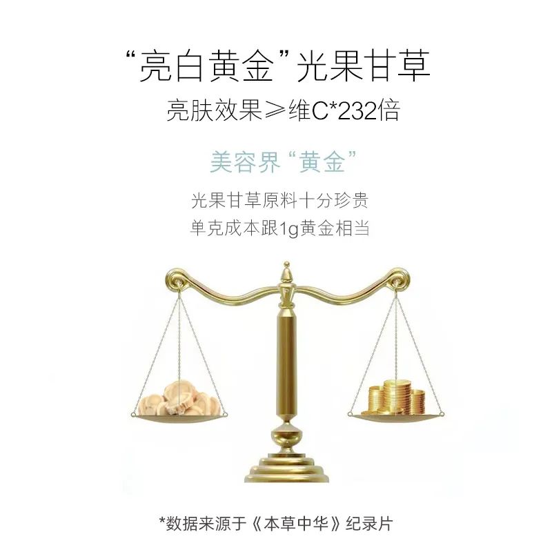 光果甘草被称为美容界“亮白黄金”,因为提取困难,单克成本和1g黄金相当。