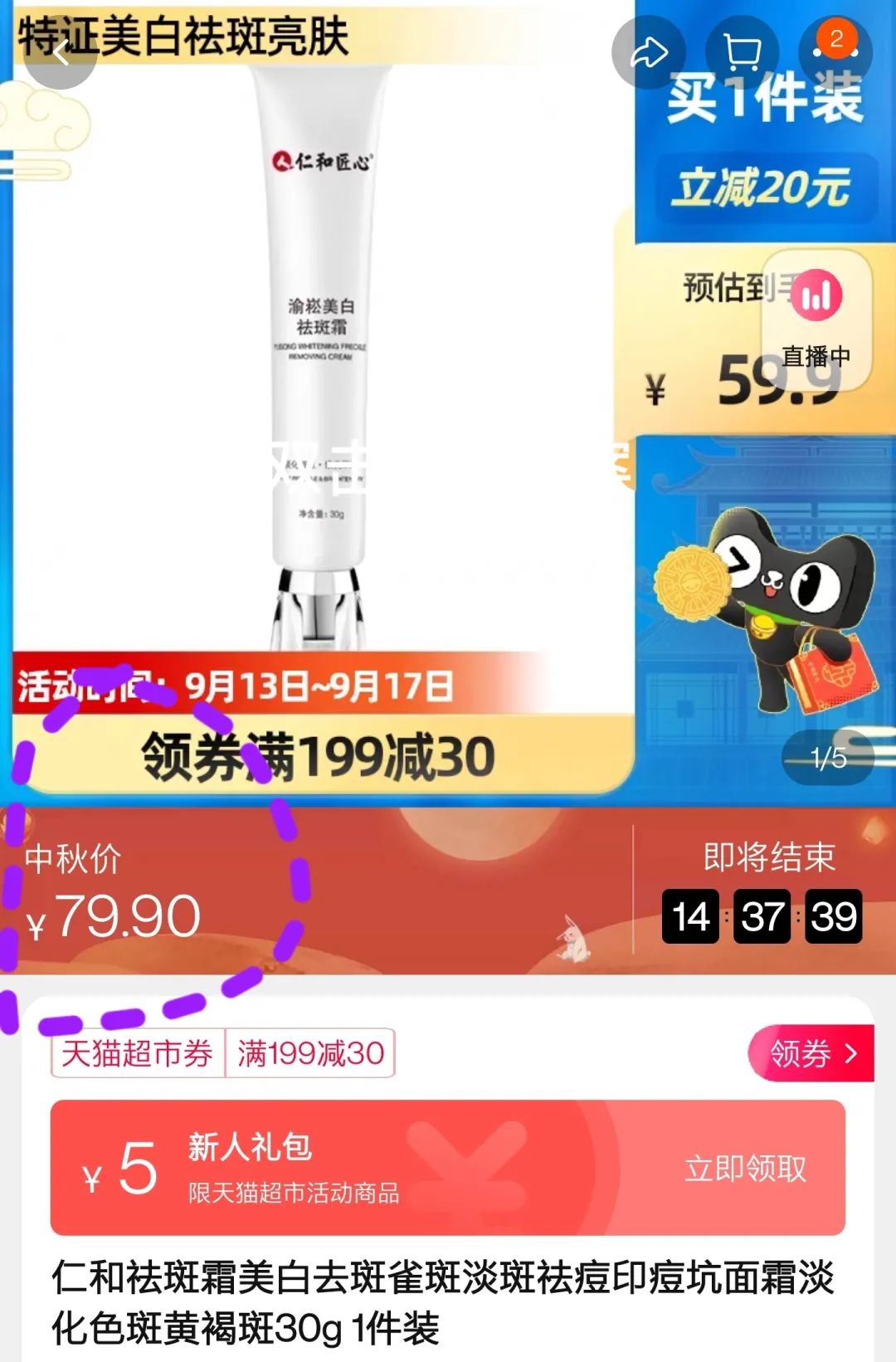 日常价98元/支,现优惠价只要49.9元/支,第2支半价,比某平台上的中秋活动价还要便宜!