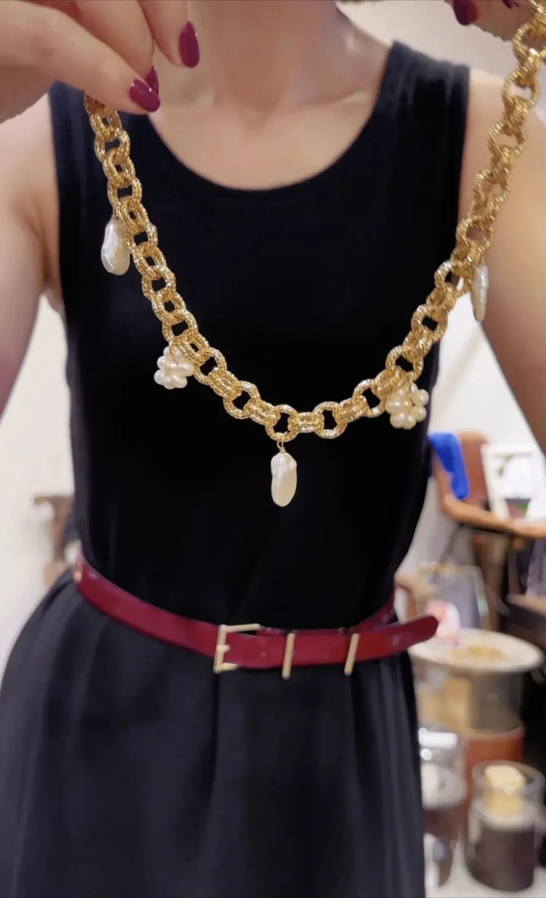 一长项链不仅能提升整体造型的质感,还能体现佩戴者的品味。
