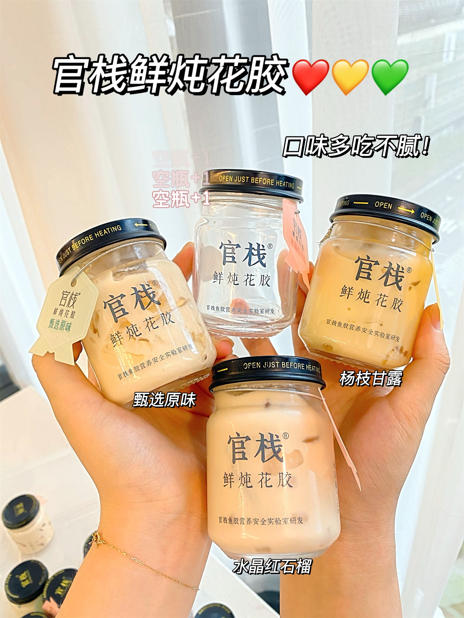 还有三个味道,甄选原味、水晶红石榴、杨枝甘露