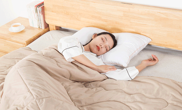 整张被子均匀填充,盖在身上,就像有热流窜到肩、背、腰、膝盖和足底一样,全身都暖呼呼的,好舒服。