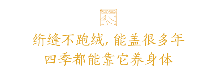 后来我才知道,原来为了固定姜粉和艾绒,让它更暖和,平直堂还在被子里加了新疆长绒棉和羽丝棉。