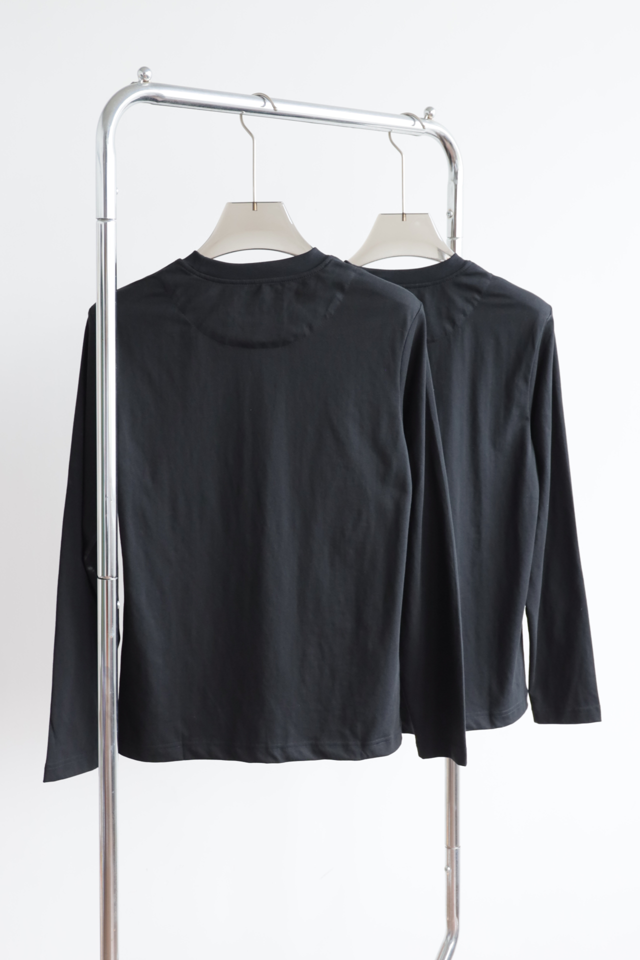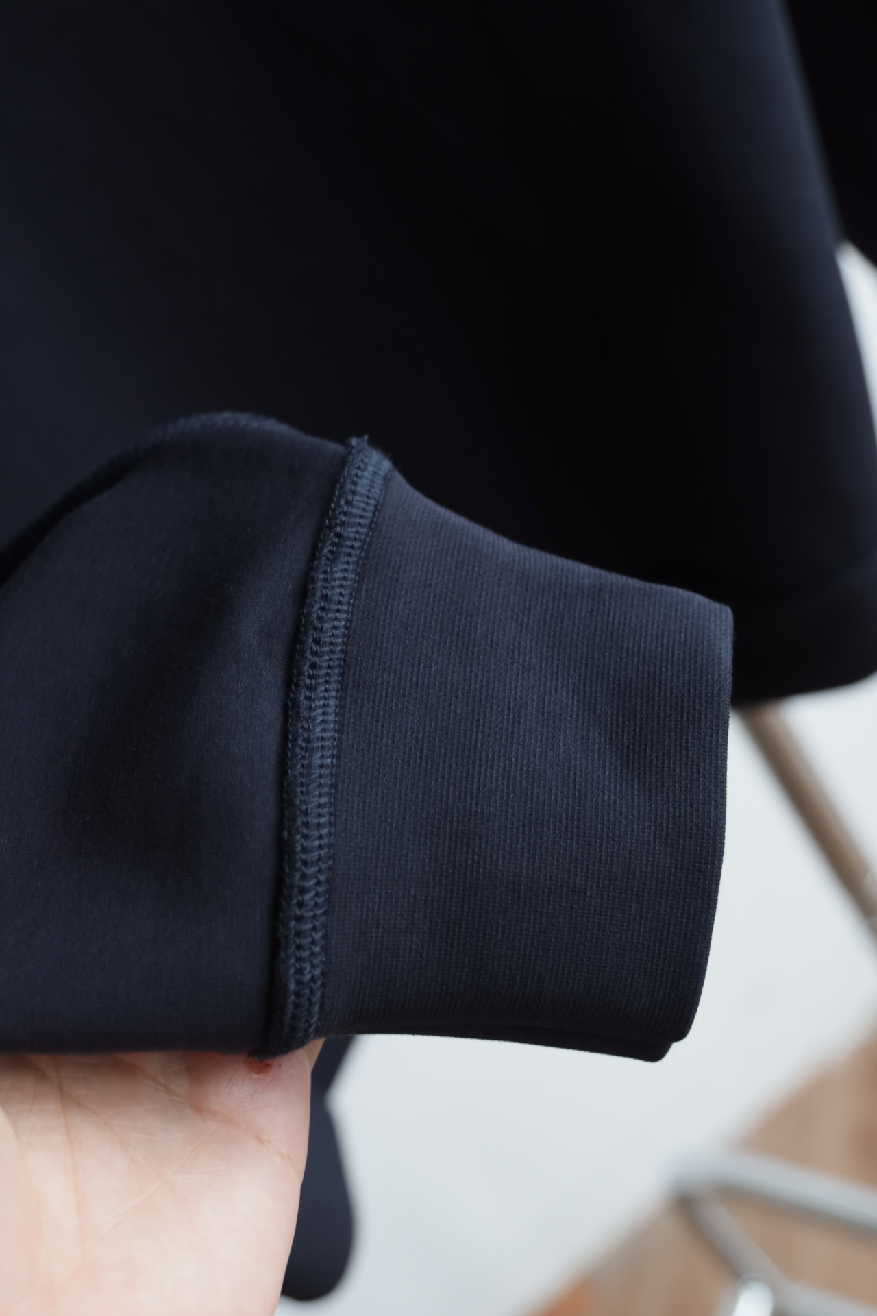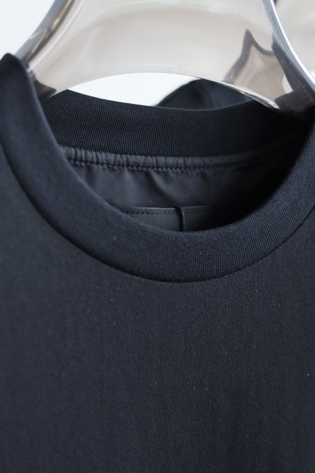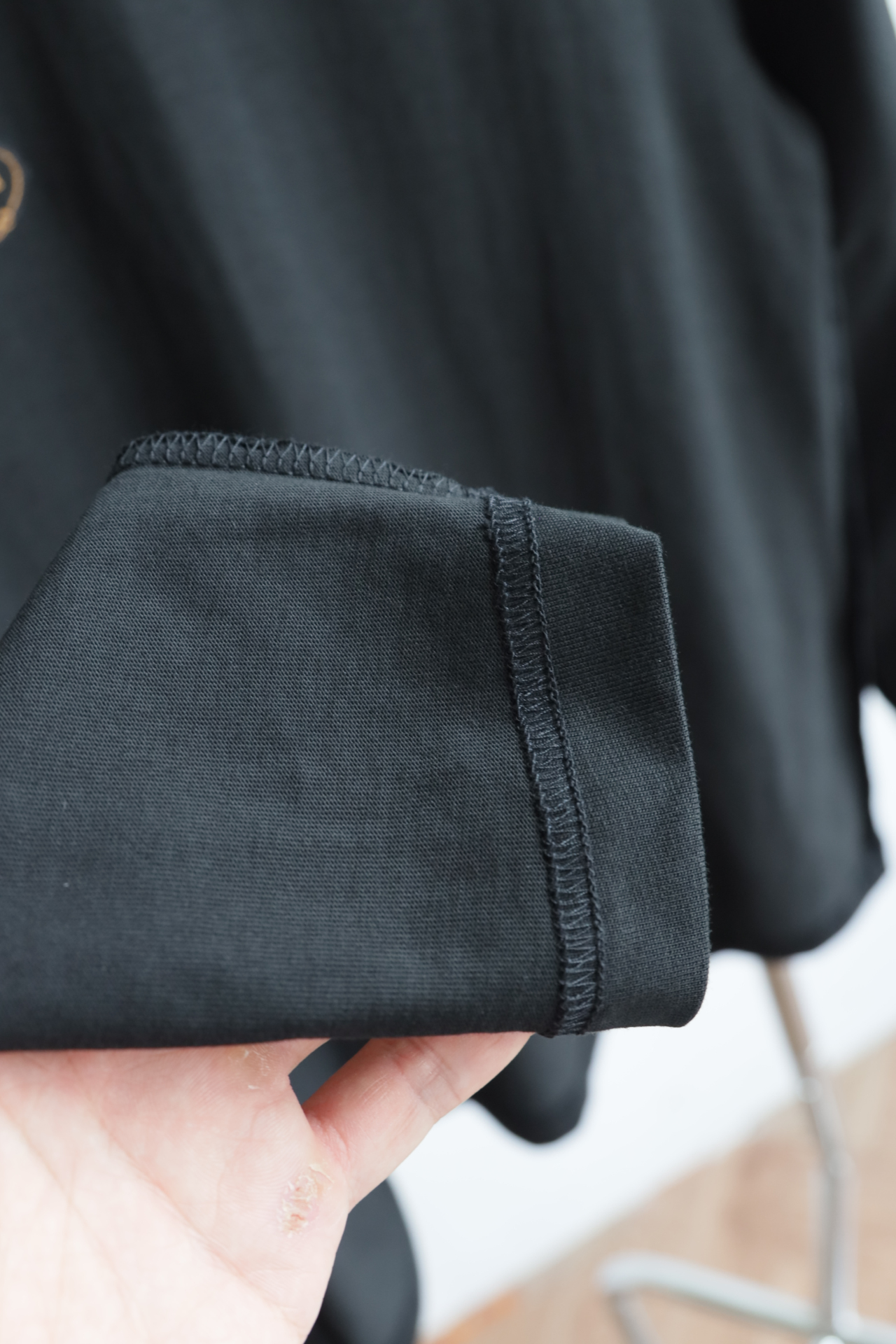 领口同缸螺纹,不易变形。常规合身版型,净色黑色