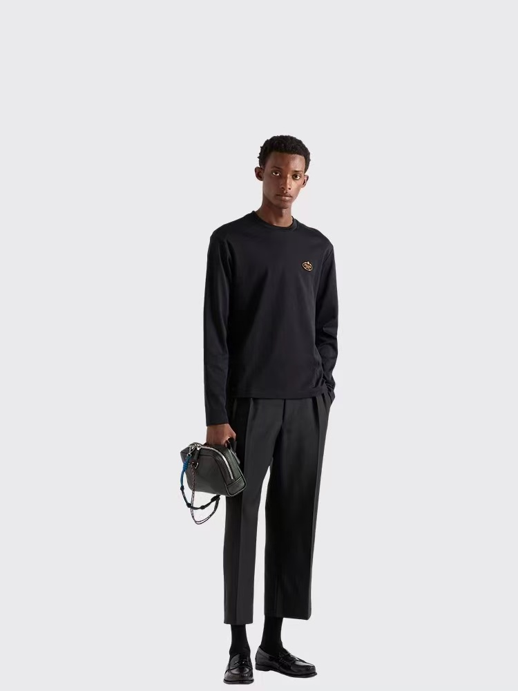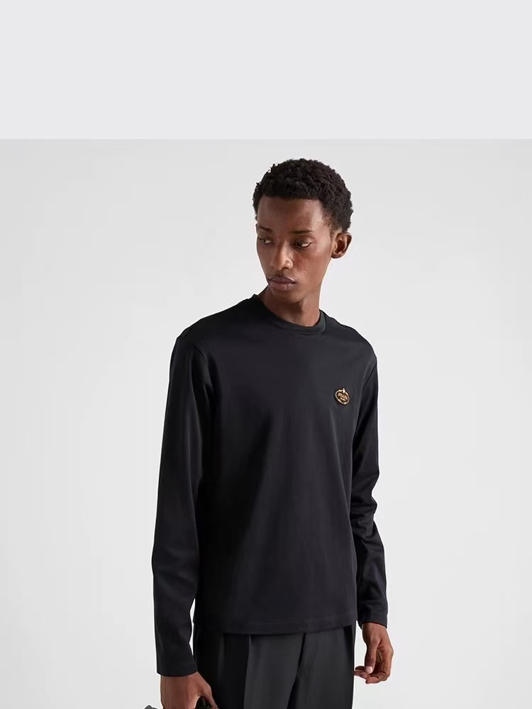 P.R.D 棉质平纹 徽标针织长袖T恤