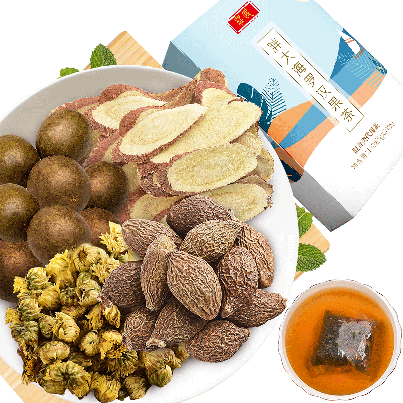 这两种茶饮都属凉性药,味甘,罗汉果归脾肺经,胖大海归肺经,大肠经,都可以起到利咽清肺,生津止咳的作用。罗汉果偏向与止咳化痰,是春节比较不错的茶饮,尤其是因春节大量喝酒吃重口味的美食,导致上火,嗓子肿胀,喝这款茶最合适不过了。庄民这款茶饮是独立包装,科学配比精选6味自然草本,不仅有胖大海罗汉果,还有菊花、枇杷叶等,是茶饮中的新茶道,让人入口芬芳四溢,神清气爽。
