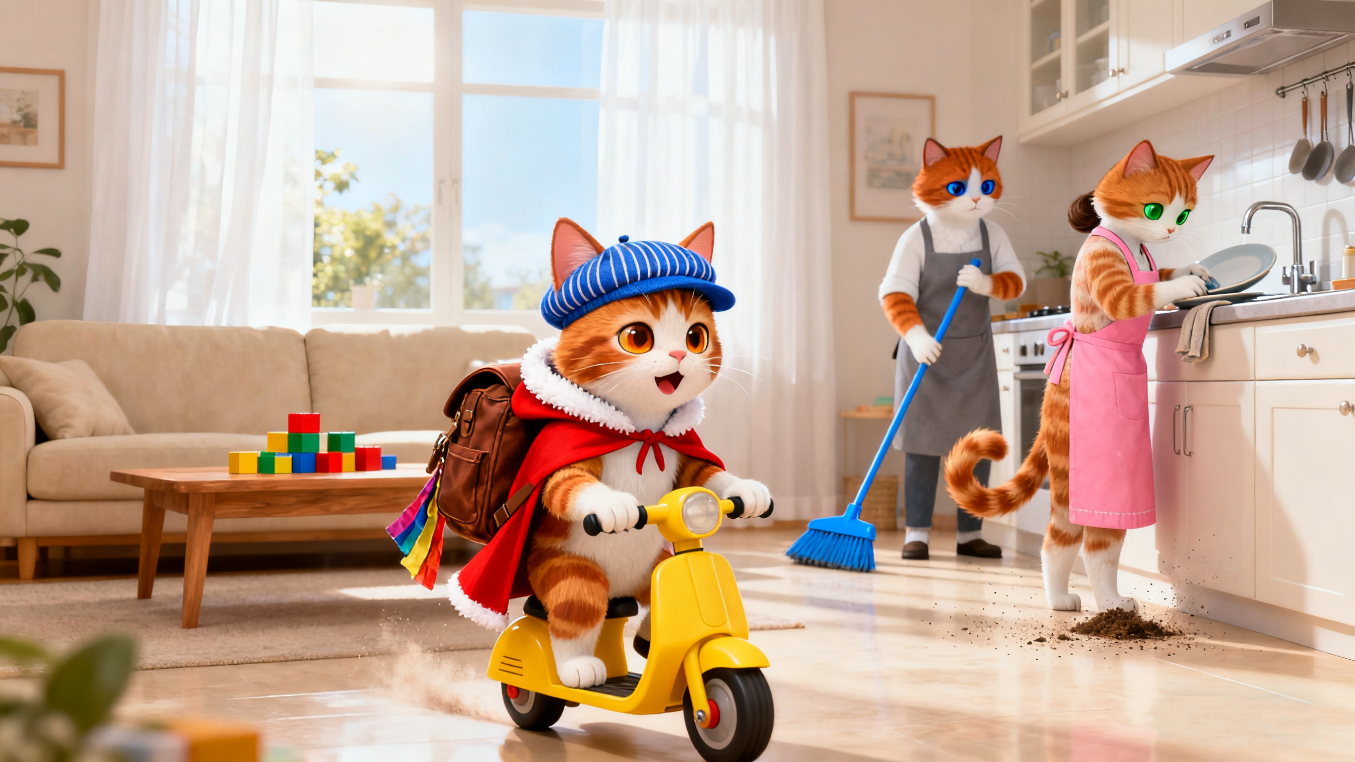 猫咪快递员,你能帮忙把奶油送到客厅里吗?”