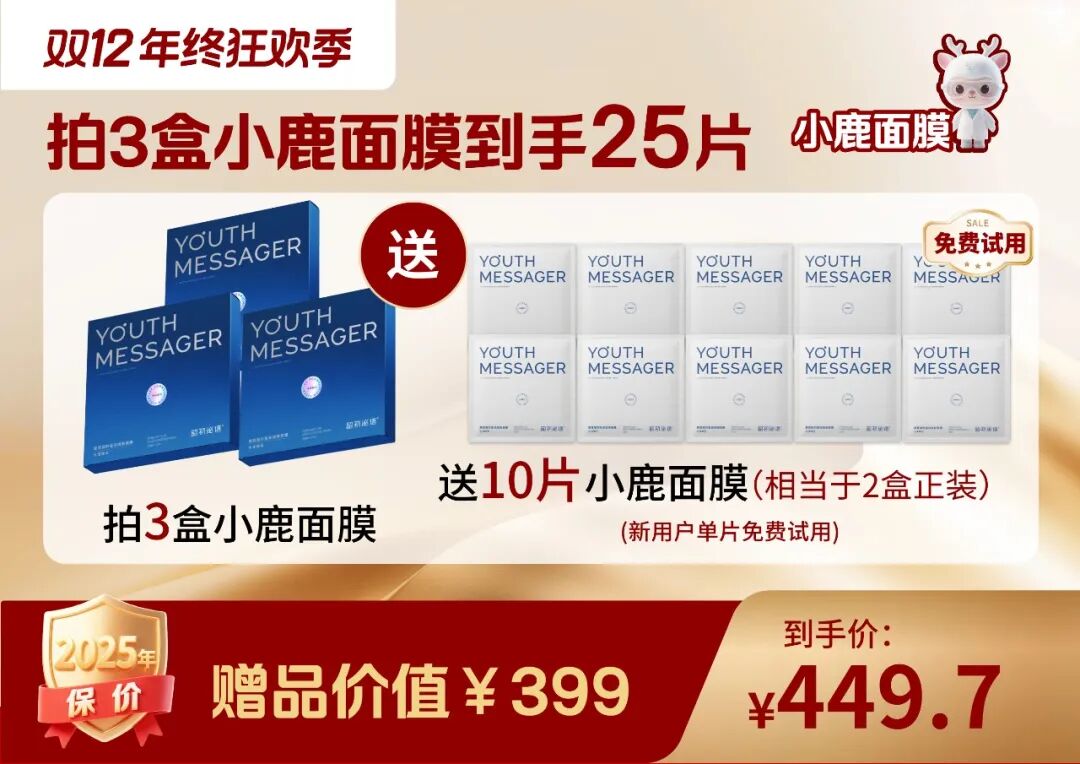 • 小鹿面膜(主推):449.7 元买 3 送 10,直接囤 5 盒正装量!