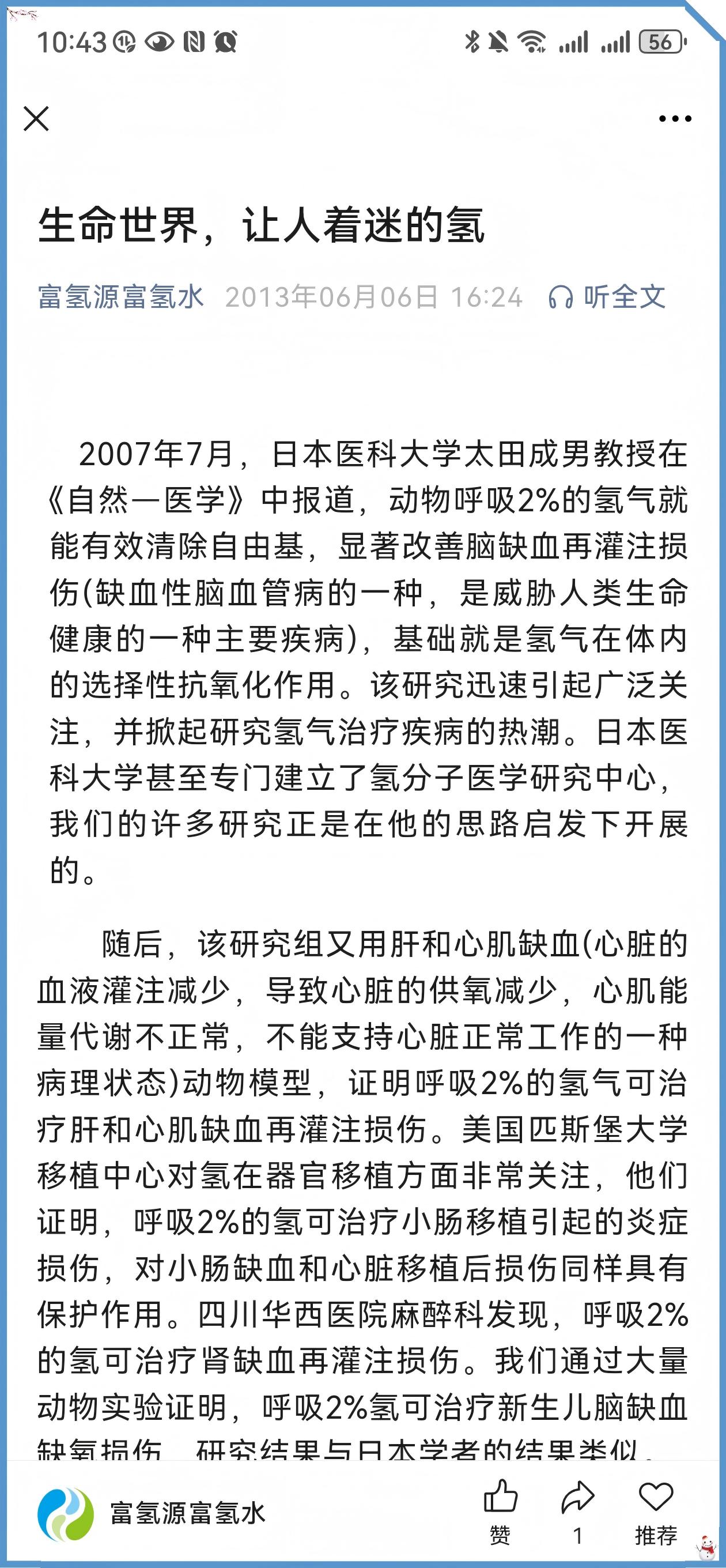 是不是中国第一篇微信公众号关于氢医学的文章呢?