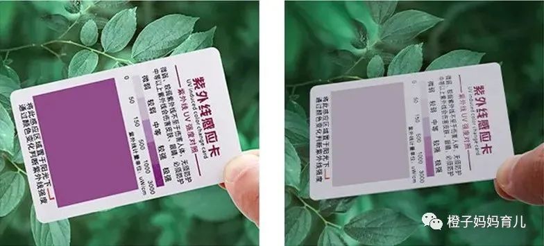 左边是直接暴露在阳光照射下的紫外线感应卡,全部变成深紫色(紫外线感应超强)。