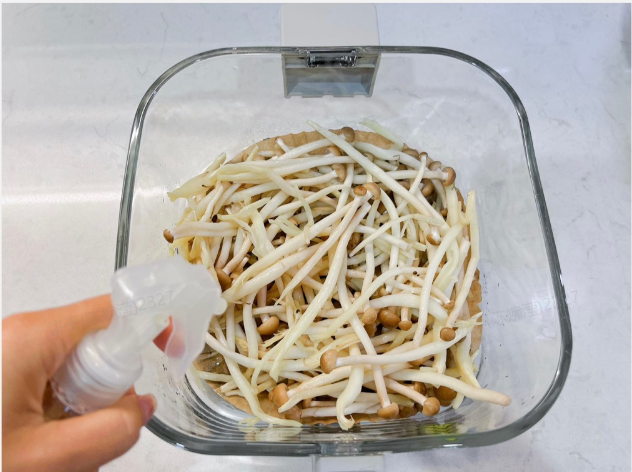 2、适量喷上一点油,菇类本身比较吸油,根据自己的口味添加即可