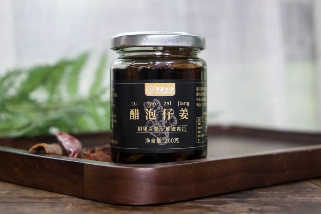 选用上好铜陵白姜、陈年老醋,几十年经验的老师傅,按照一定的比例,经过40天的浸泡发酵而成。