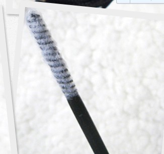 第二部,顺着睫毛生长的方向从根部往梢部刷上微透明纤维,刷头倾斜45度,刷试1到2次即可。