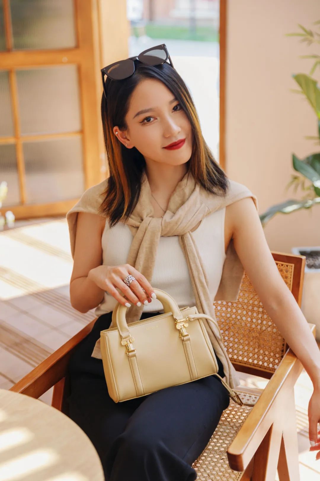 小号还配了一条可拆卸的肩带,单肩斜挎都可以调节长短,适合年轻一点的朋友。除了上班背日常出行也很吸睛,奶酪布丁和松石绿的颜色都非常夏日,我们包包号“萧亚轩”涵诗拿的是奶酪布丁~