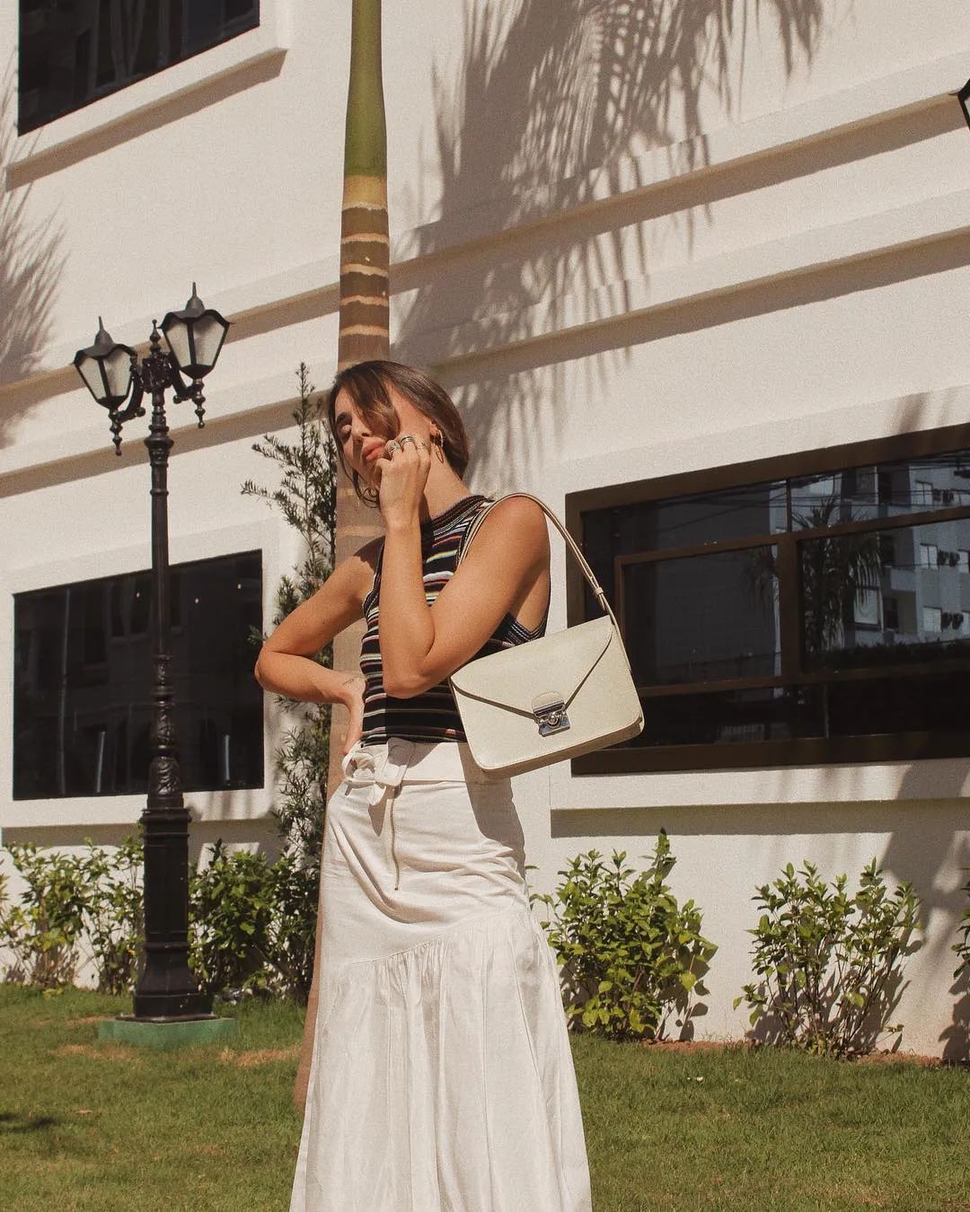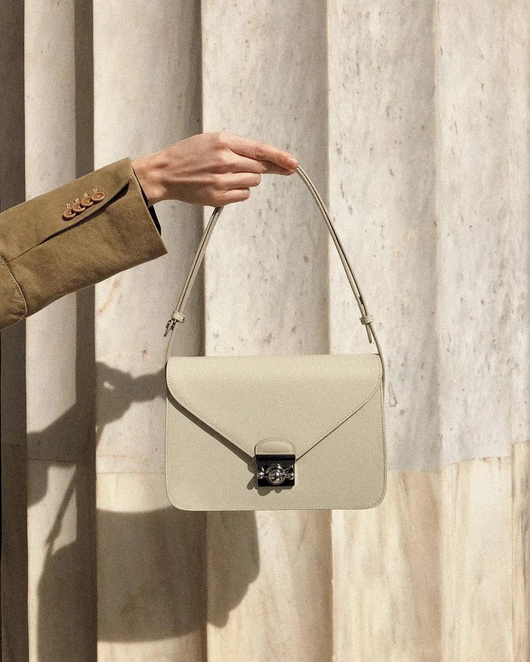 伊莎贝拉作为一款通勤包,本身是线条简洁方正的律政包包型,但在标志性的罗马柱和拱券手柄加持下,还是能让它不那么沉闷,有型有款之余还带着力量感。