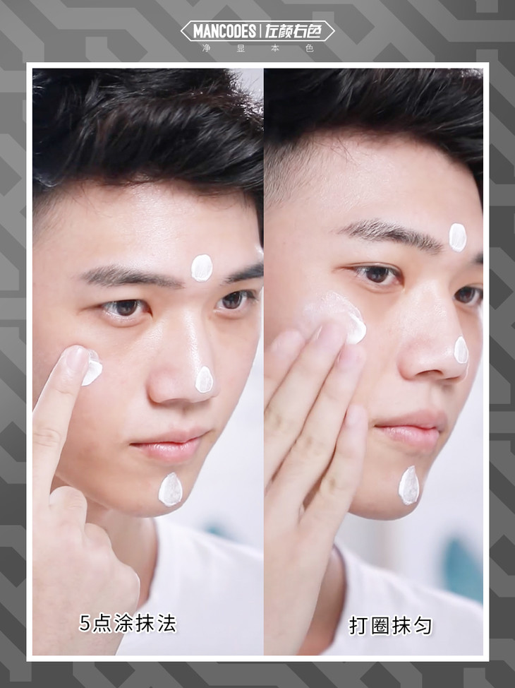 可以护肤后,用素颜霜,提亮肤色,有一句话“一白遮百丑”,提亮肌肤的时候,遮瑕平日的黑眼圈痘印,可以让肌肤看起来更帅气;