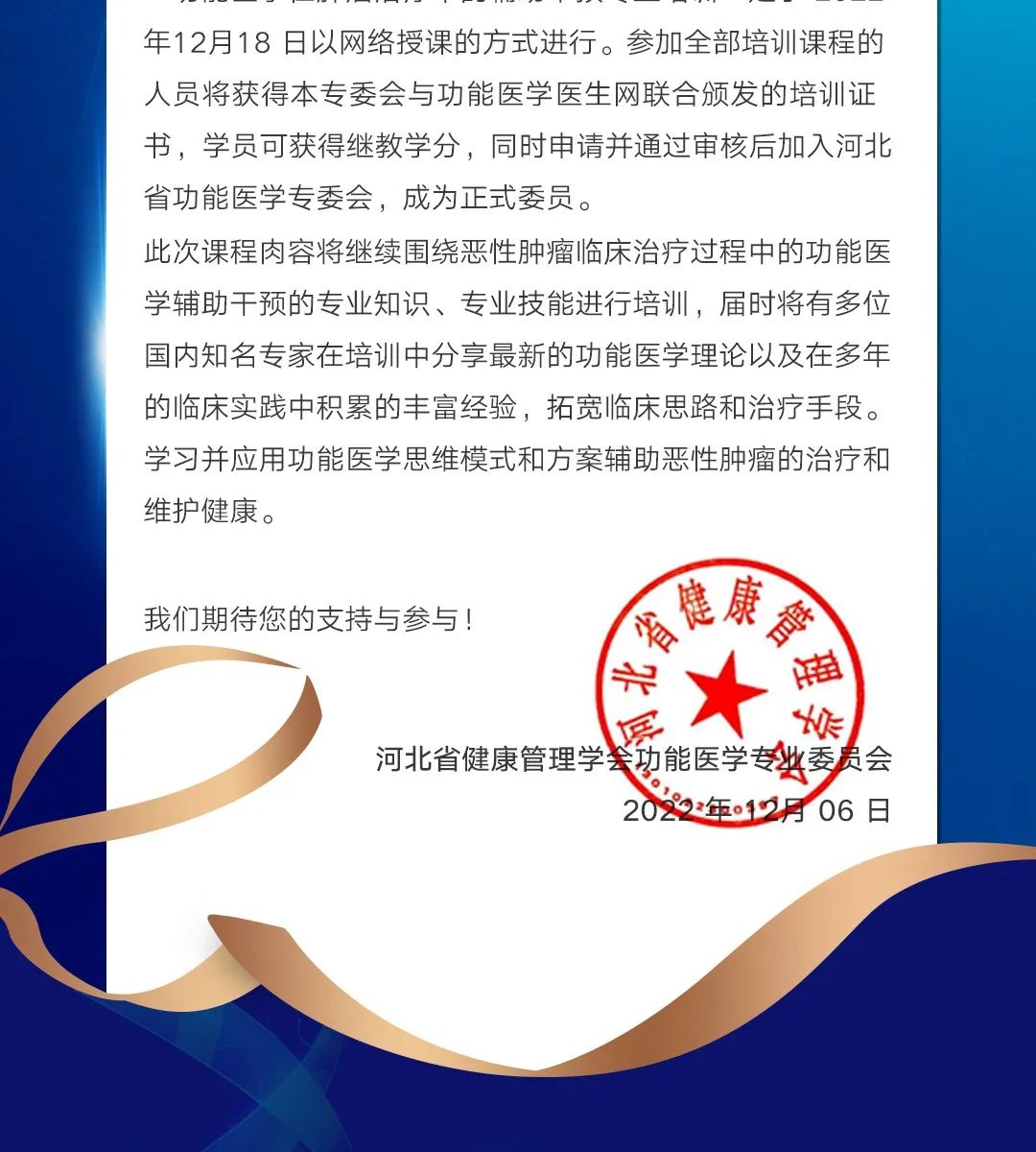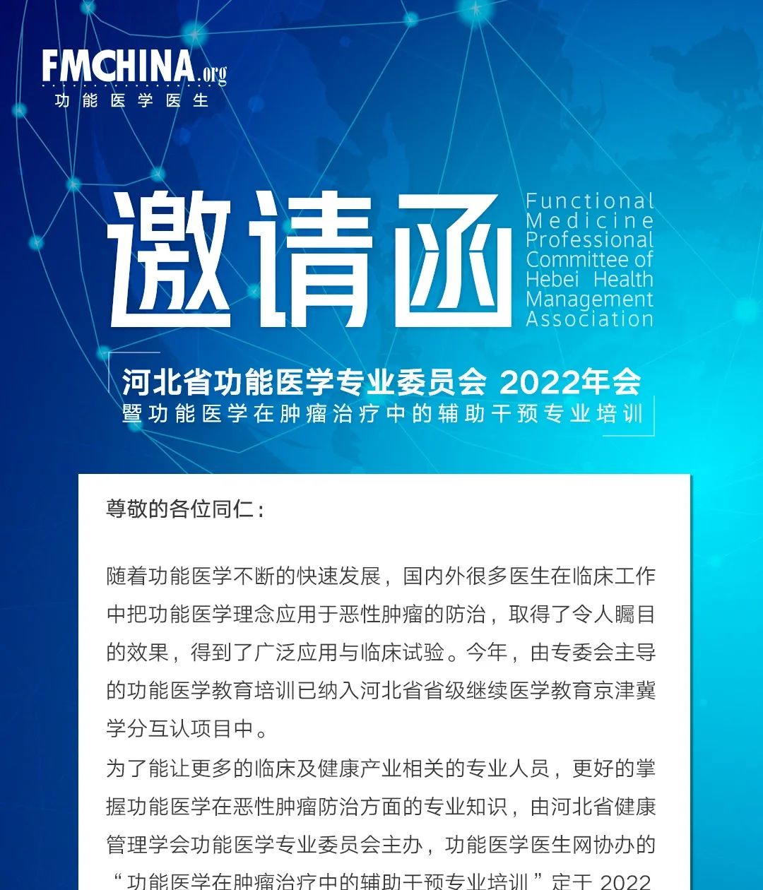 直播预告|河北省功能医学专业委员会-功能医学在肿瘤治疗中的辅助干预专业培训