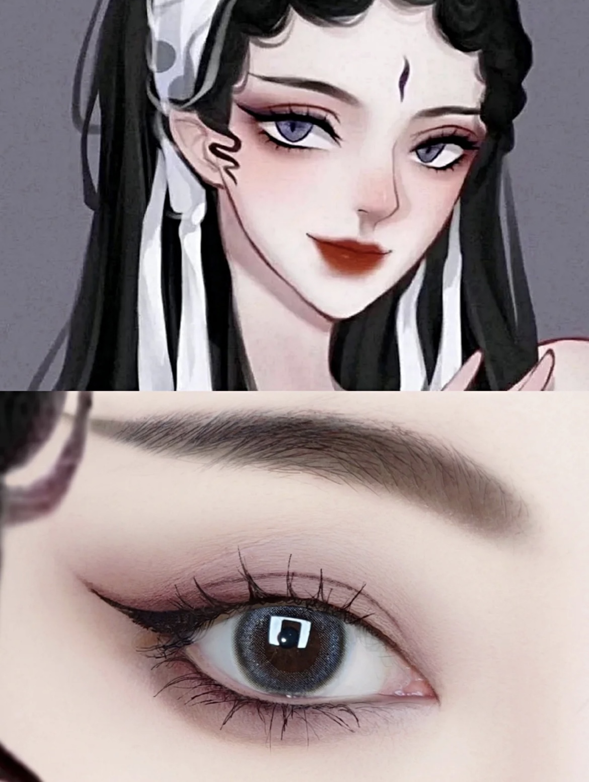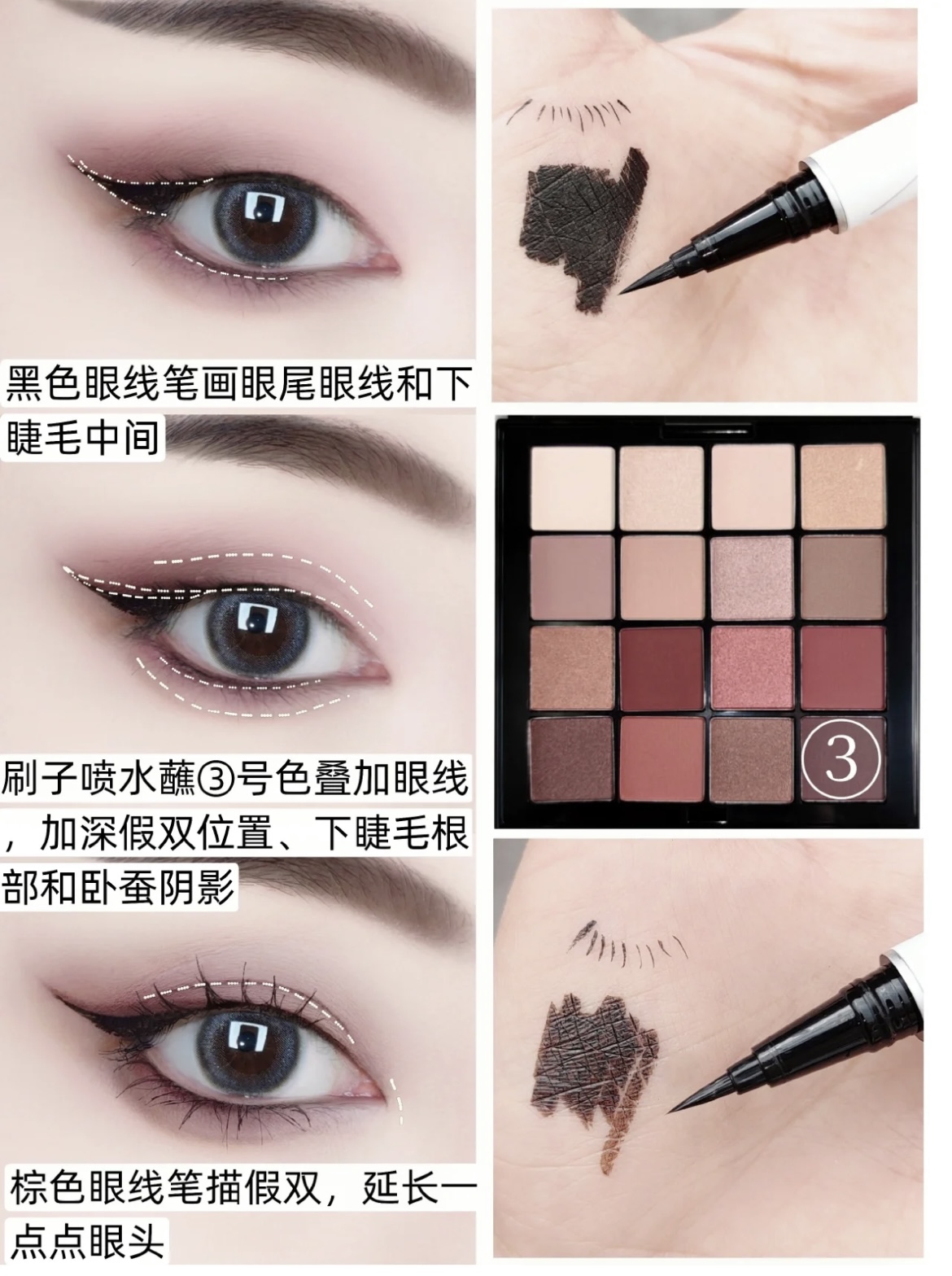 1、黑色眼线笔画眼尾眼线和下睫毛中间
