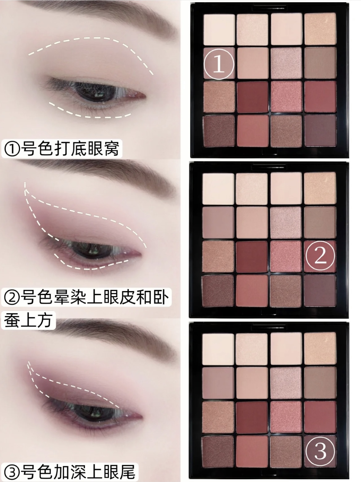 2、哑光梅红晕染上眼皮和卧蚕上方