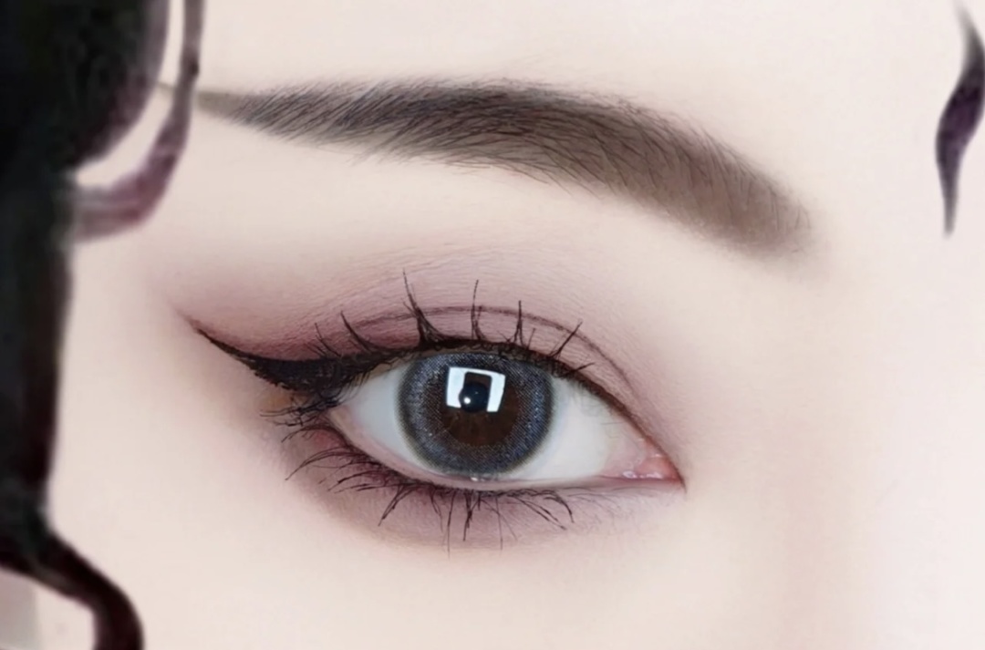 2、刷子喷水蘸哑光紫咖色叠加眼线