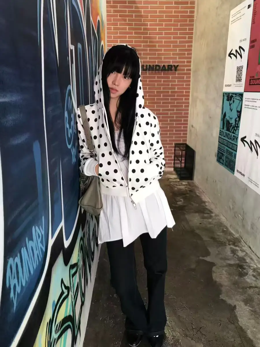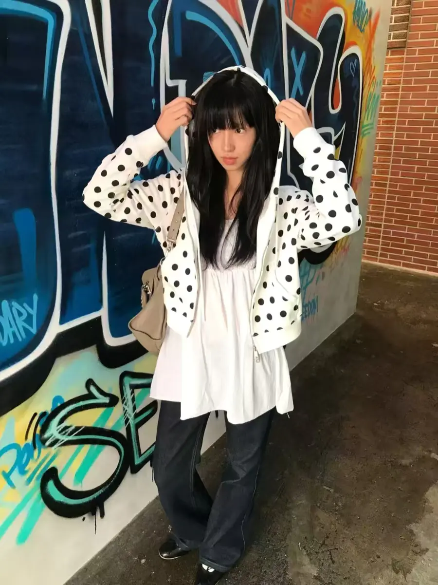 新品上身丨波点连帽外套炸街,涂鸦墙前甜酷感拉满💥