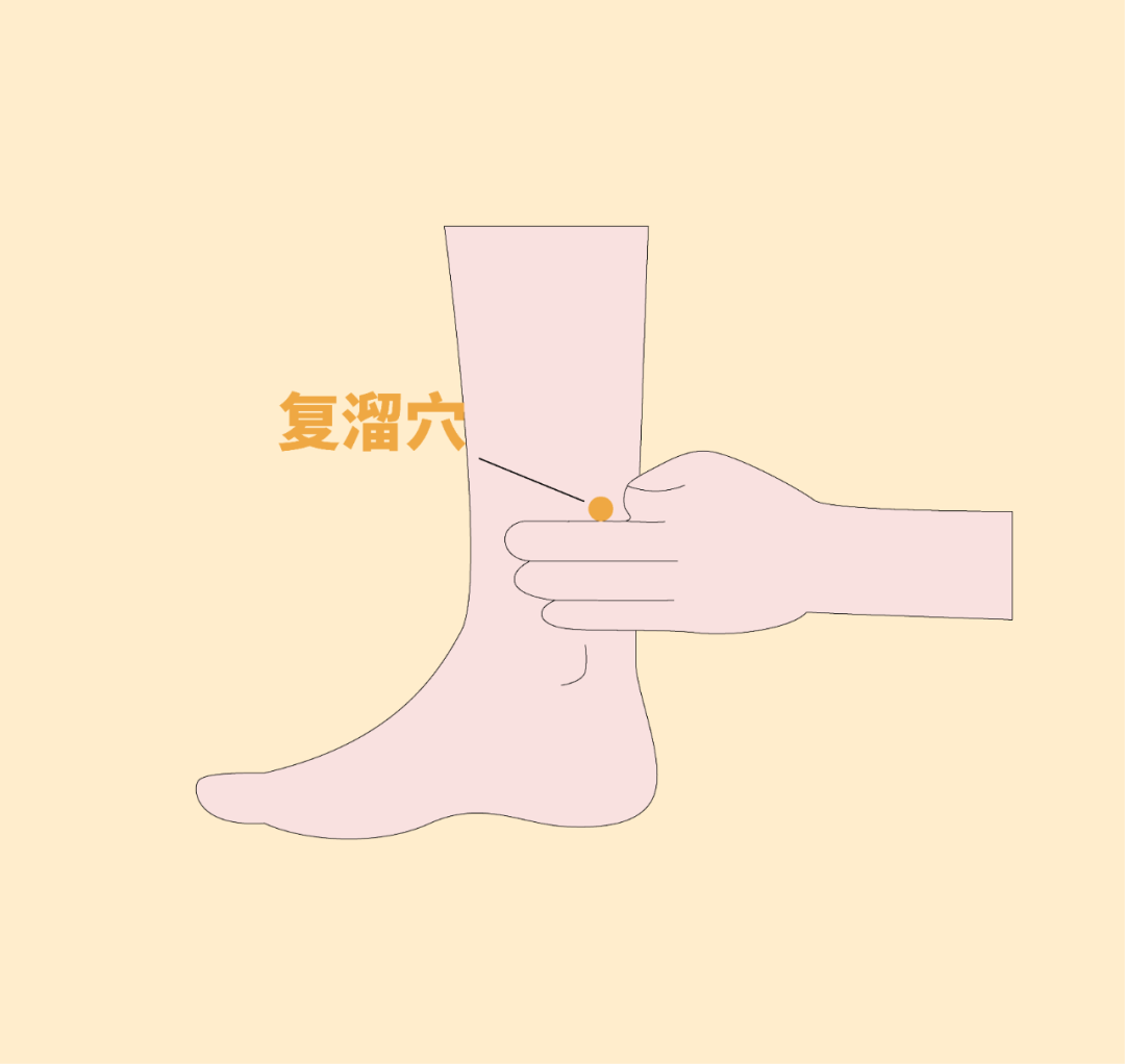 方法:拇指腹按揉复溜穴3-5分钟,轻微酸胀感即可。