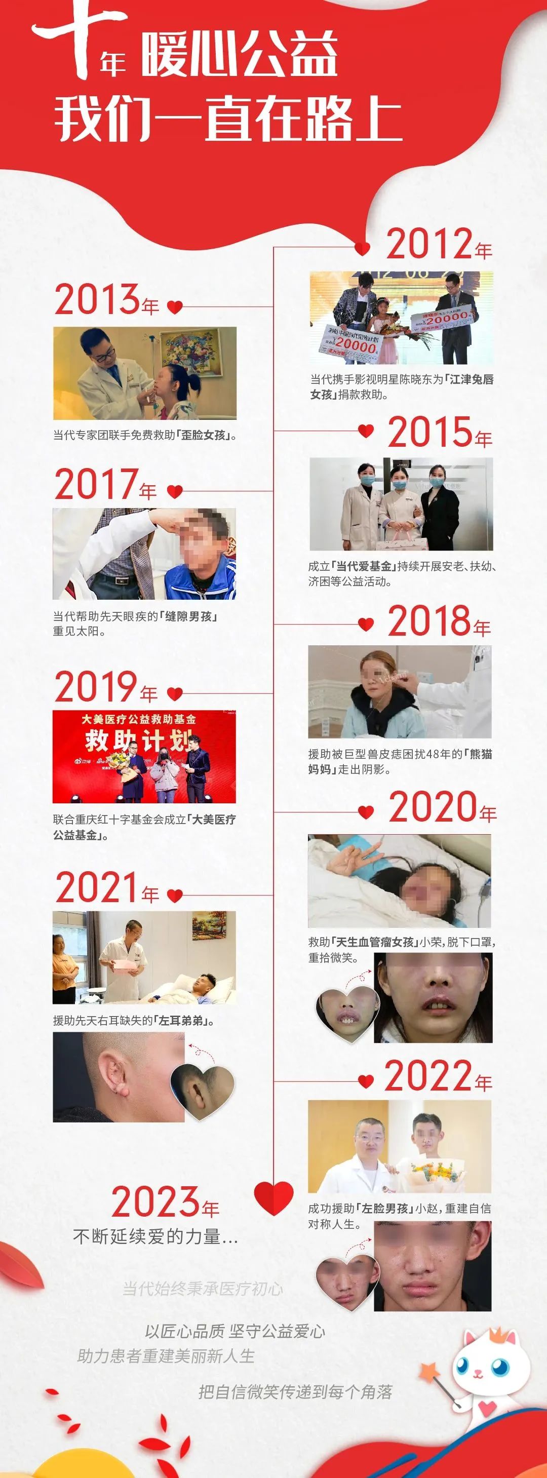 为了让更多面部缺陷患者绽放健康自信笑容,重庆当代三级整形外科医院联合重庆市红十字基金会、中国一级协会分会发起了大美公益第4季全国公益性活动!