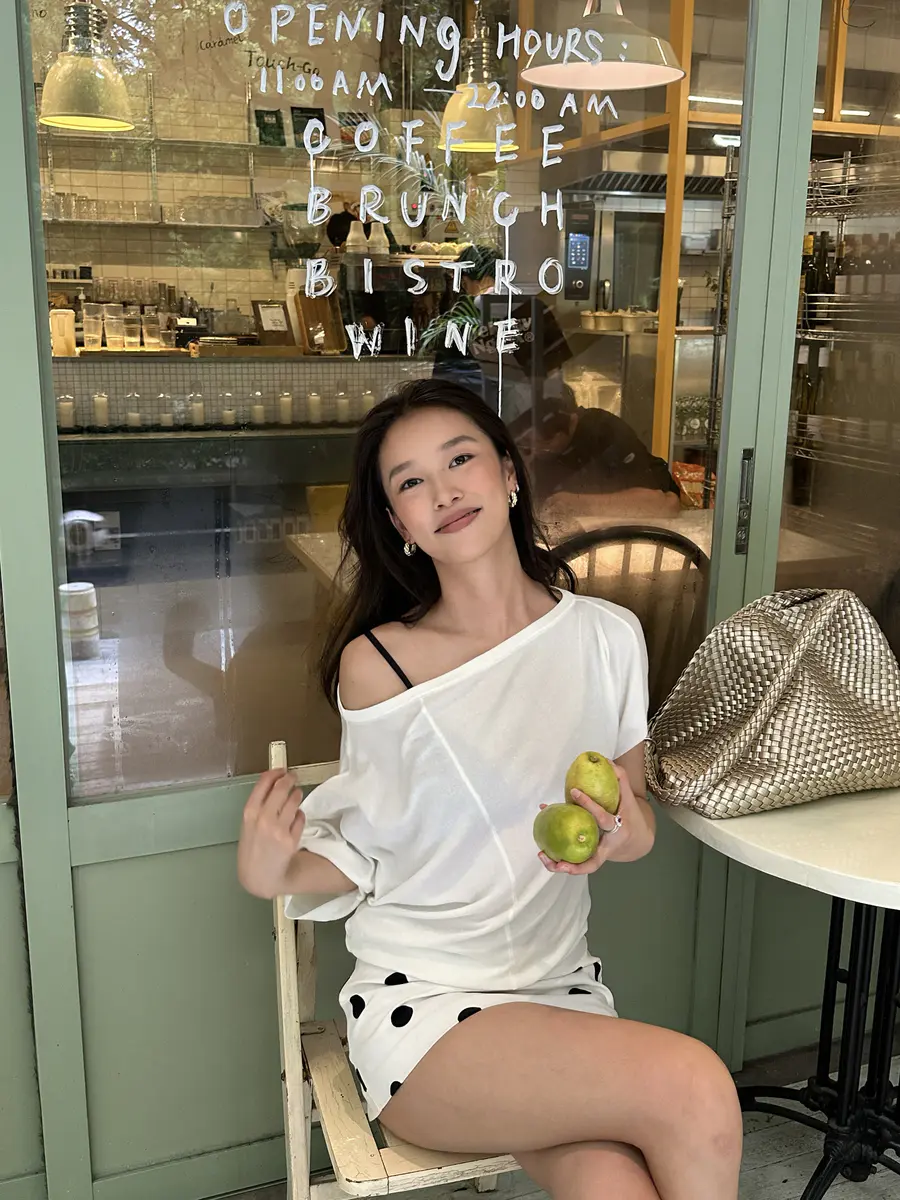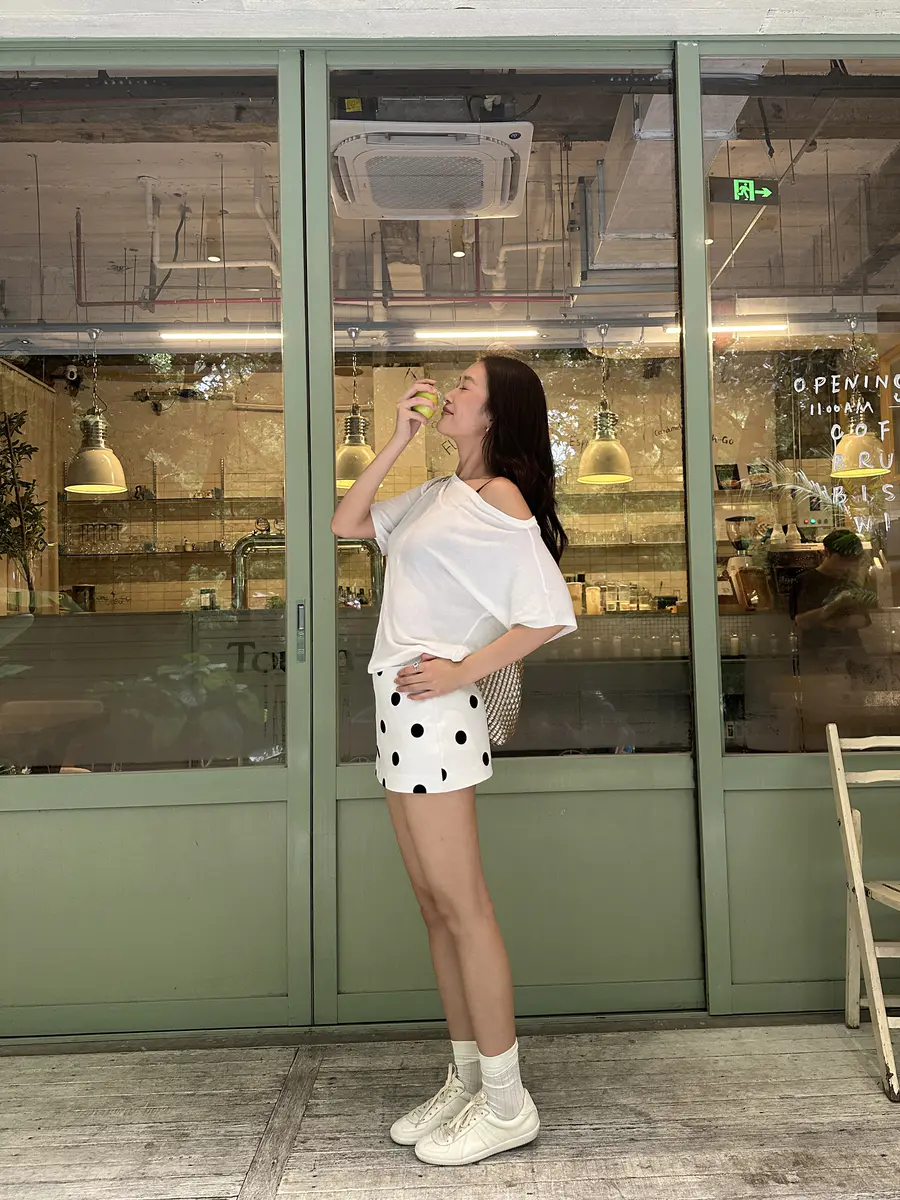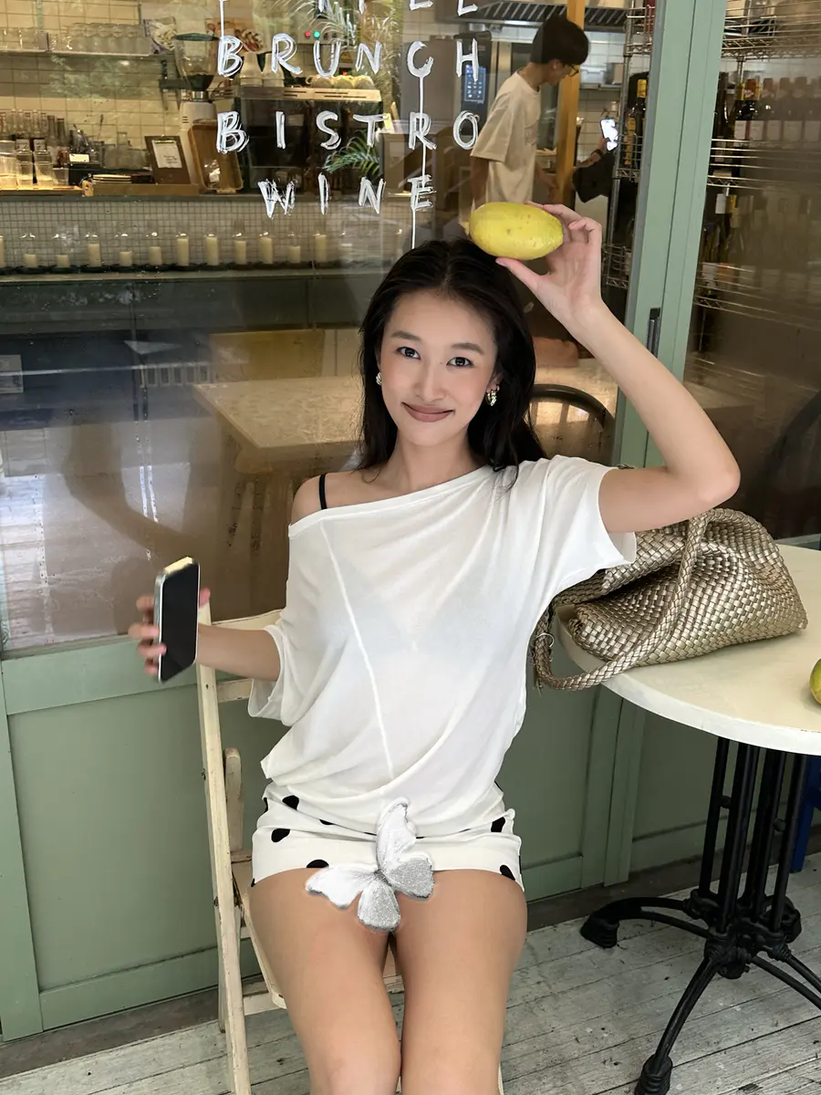 新品上身 | 街边咖啡厅⌛露肩短t超出片~