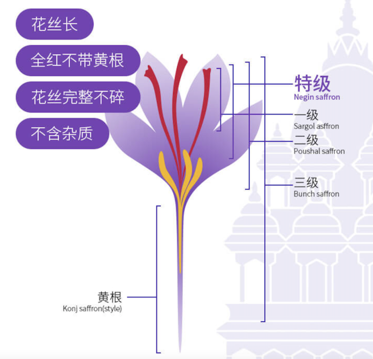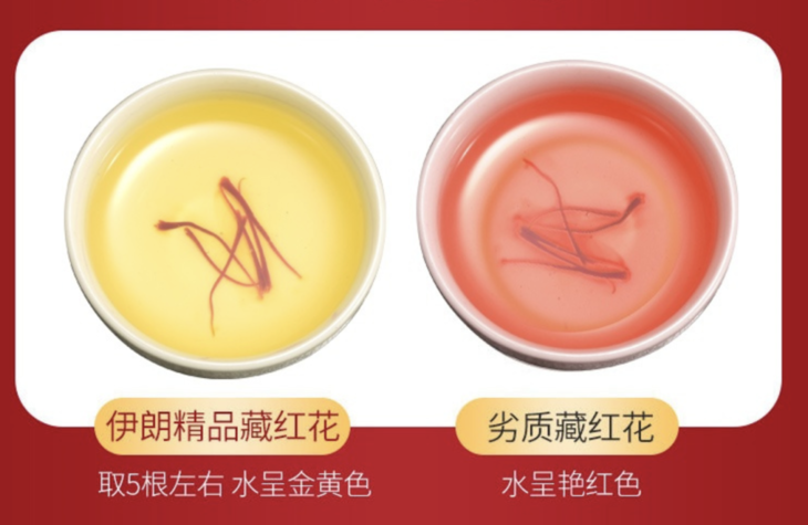 市面上很多藏红花尾端会有类似玉米须的黄根,美观性不说,喝起来效果也大打折扣。