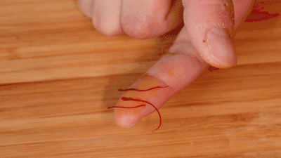 稍稍浸了水的藏红花还有点“结实”,用手用力捻了几下都没有捻碎。