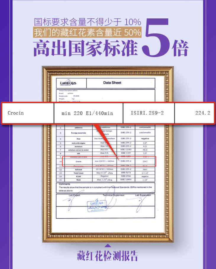 藏红花素含量是国标5倍