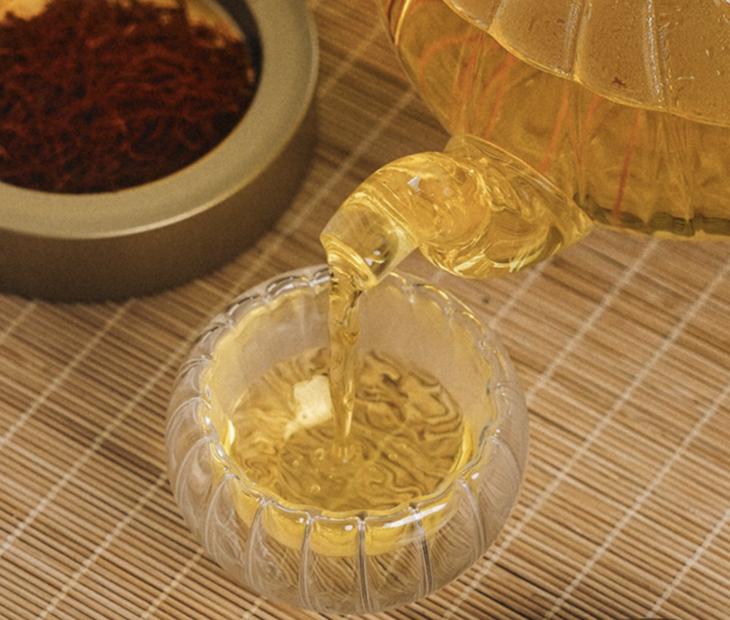 别看名字叫藏红花,可里面的藏红花素却是有着金黄色的“血脉”。也是因为这样,伊朗人常常把藏红花泡出来的茶颜色叫“帝王之色”。